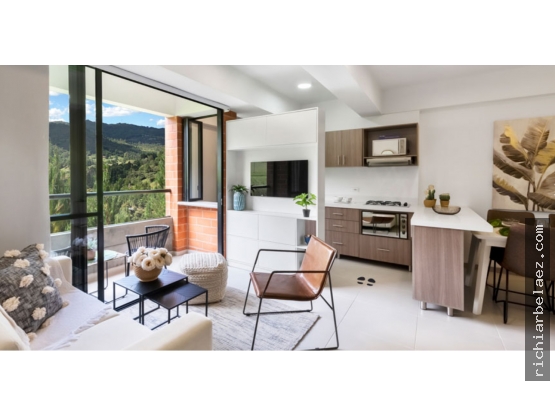 Pesos ColombianosVendo Moderno apto La estrella, para estrenar, piso muy alto con supervista, tiene un área de 79.2 M2 distribuidos así: 3 Alcobas, la principal con vestier, baño y balcón, sala-comedor, baño de alcobas auxiliares, zona de ropas, cocina abierta, balcón en la sala, parqueadero y cuarto útil en el parqueadero.