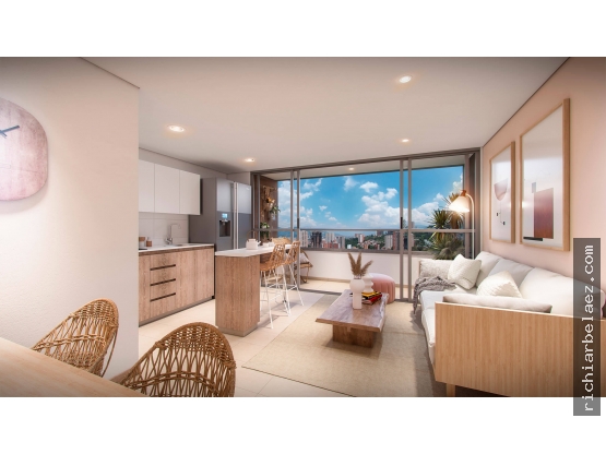 Pesos ColombianosVendo apto tipo mariposa, muy nuevo, Sabaneta, San José, tiene 59.62 M2 distribuidos así: 2 habitaciones, ambas con baño, sala-comedor, balcón con linda vista, cocina abierta, parqueadero y cuarto útil.