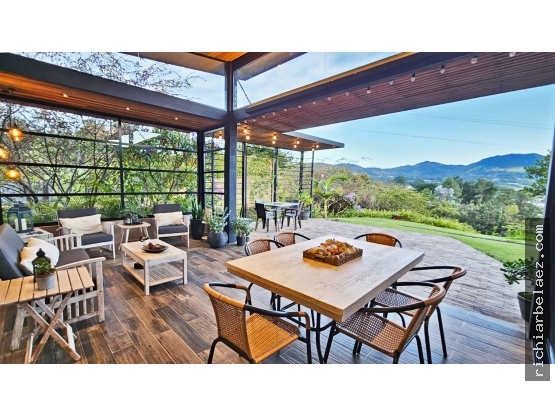 Pesos ColombianosVendo moderna casa de un piso en La Ceja con sólo 5 años de construida, hermosa vista, unidad cerrada, área construida de 330 M2 mas 42 M2 de deck y un área de lote de 4534 M2, tiene 3 alcobas, la principal con baño y vestier, las otras 2 alcobas con baño y closet, Biblioteca, Baño social, alcoba de servicio con baño, 3 útiles,